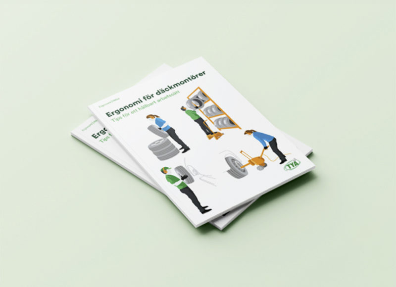 TYA har tagit fram en folder och två affischer som ger kunskap om risken för belastningsskador, hur vanliga arbetsmoment kan genomföras mer ergonomiskt och vilka hjälpmedel som underlättar i arbetet. De ger även tips på bra tränings- och rörlighetsövningar för dig som däckmontör.